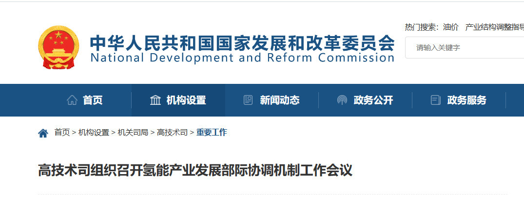 據發改委消息,4月12日,高技術司組織召開氫能產業發展部際協調機制工作會議,全面總結工作進展成效,研究部署下一步重點任務。