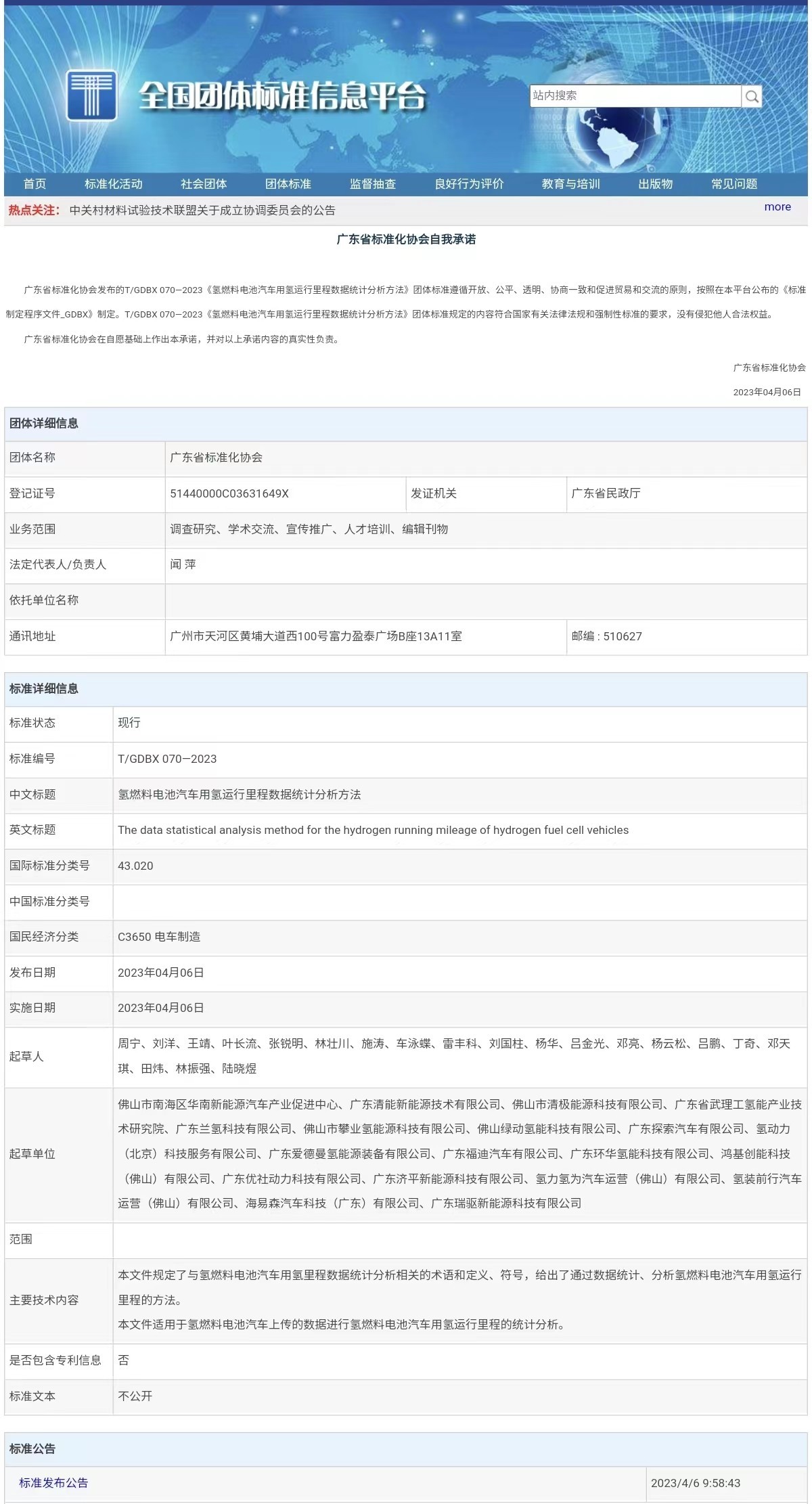 4月6日,由佛山市南海區華南新能源汽車產業促進中心主導制定的《氫燃料電池汽車用氫運行里程數據統計分析方法》(T/GDBX 070—2023)團體標準(簡稱“標準”)正式發布!